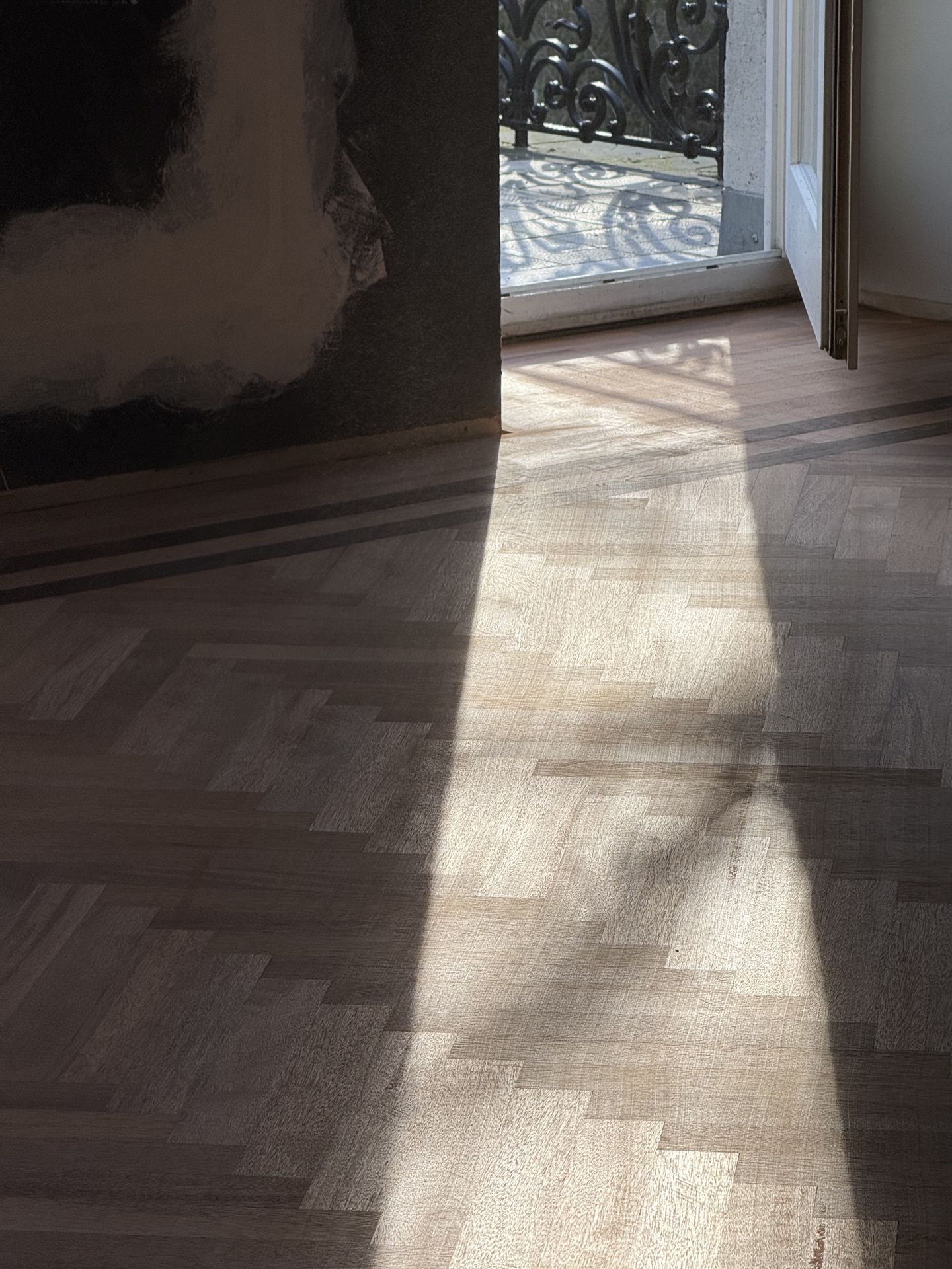 Projet :80 m² de parquet en acajou – complément, ponçage, vitrification
